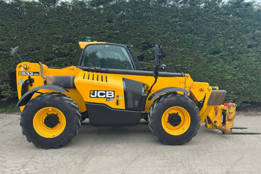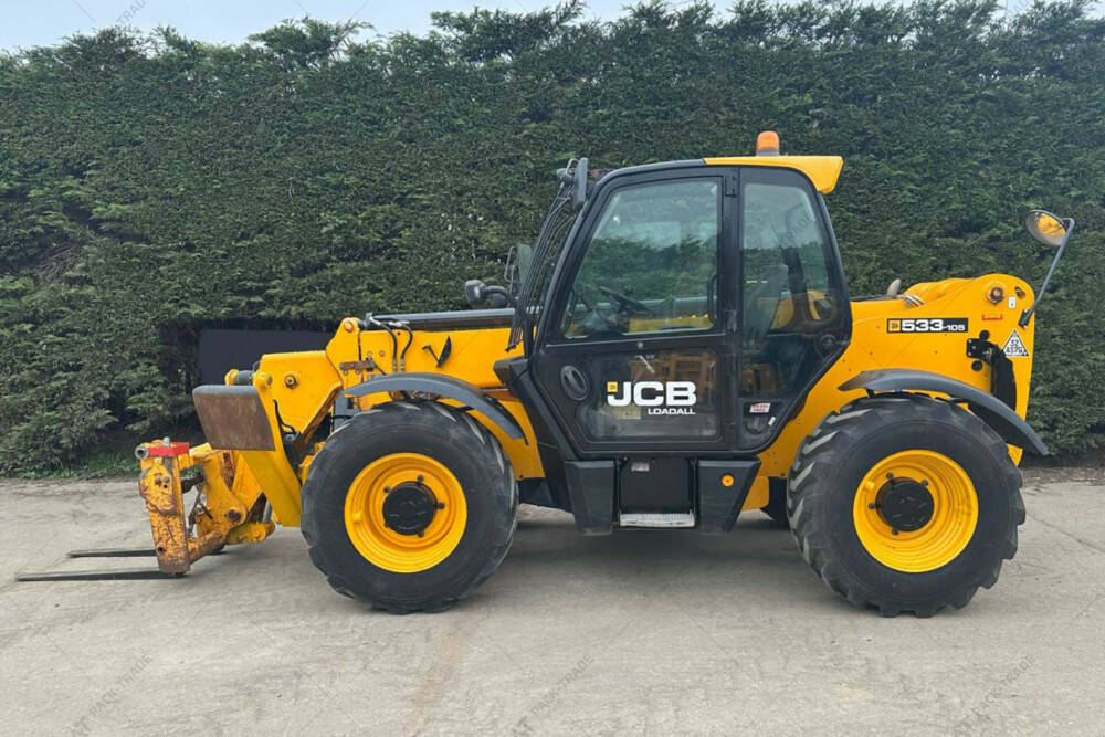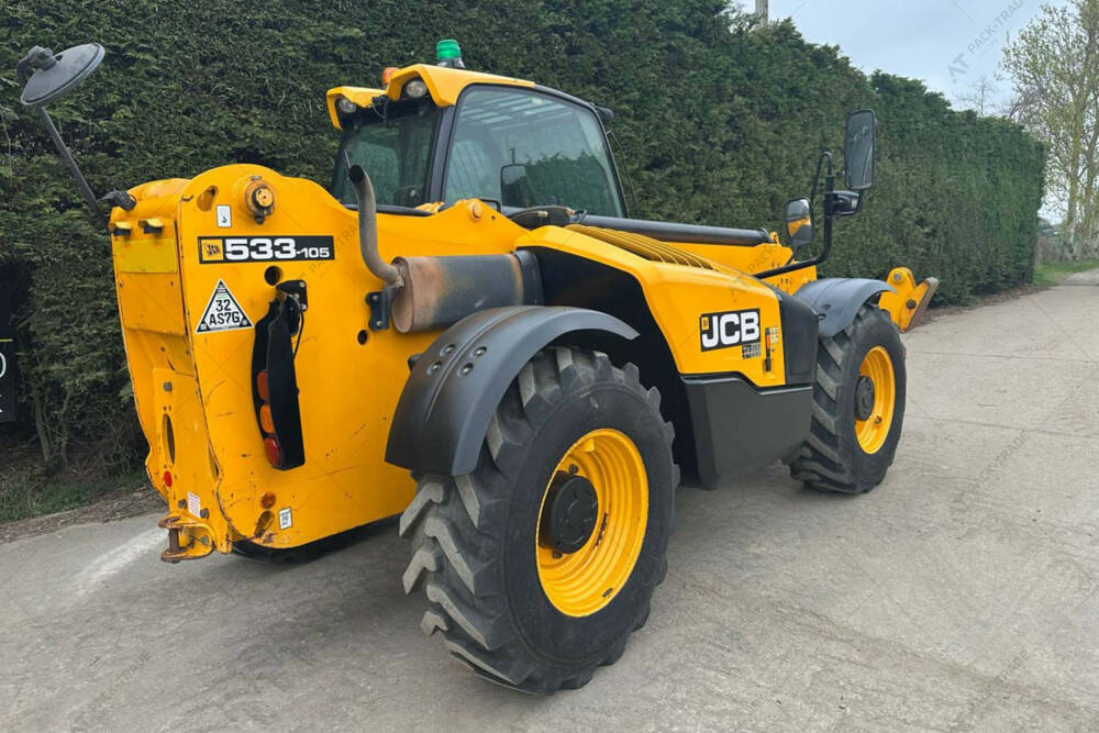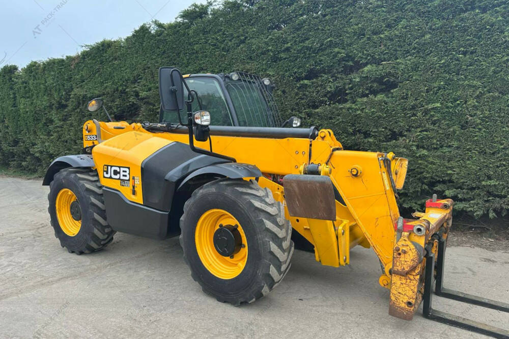Навантажувач б/в JCB 533-105, 2018 р/в, з напрацюванням 5973 м/год. Двигун – 55 кВт. Вантажопідйомність – 3300 кг. Висота підйому – 10,5 м. Кондиціонер. Гума – 400/80-24. Додаткове робоче освітлення спереду. Камера заднього огляду. Захист лобового скла. Нижній захист КПП та карданів.