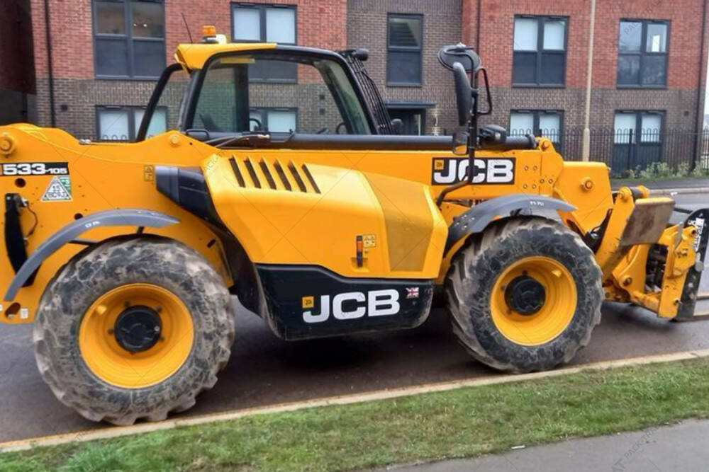 Навантажувач б/в JCB 533-105, 2021 р/в, з напрацюванням 2235 м/год. Вантажопідйомність – 3300 кг. Висота підйому – 10,5 м. Кондиціонер. Нова гума. Гідравлічні вила.