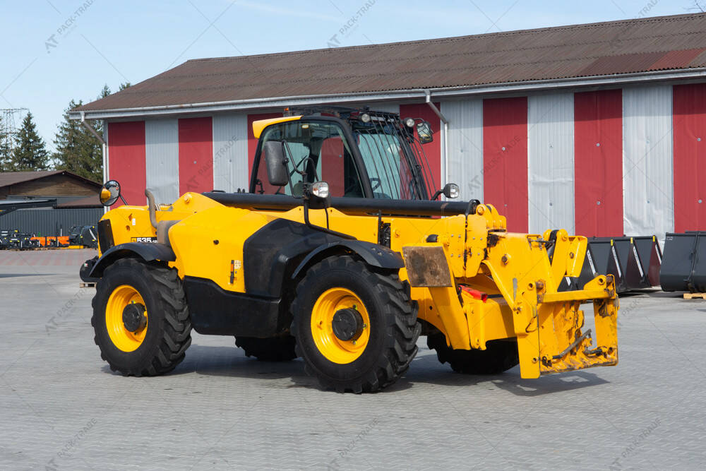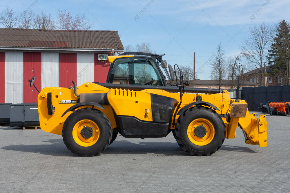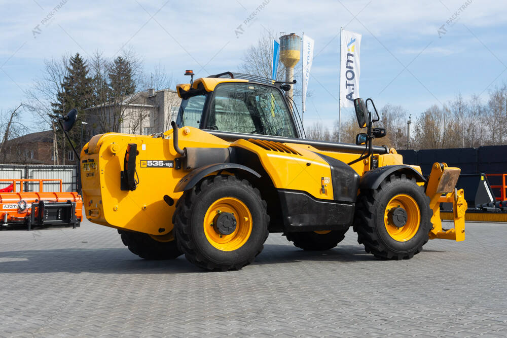 Навантажувач б/в JCB 535-125 Hi-Viz, 2017 р/в, з напрацюванням 4038 м/год. Двигун – 55 кВт. Вантажопідйомність – 3500 кг. Висота підйому – 12.5 м. Кондиціонер. Важелі. Sway. Шини – 15,5/80-24. Додаткове робоче освітлення спереду. Захист лобового скла та даху кабіни. Нижній захист КПП та карданів. Захист розподільника.