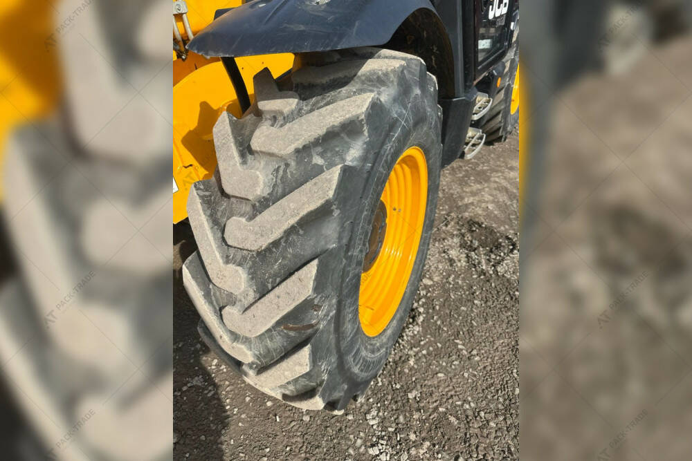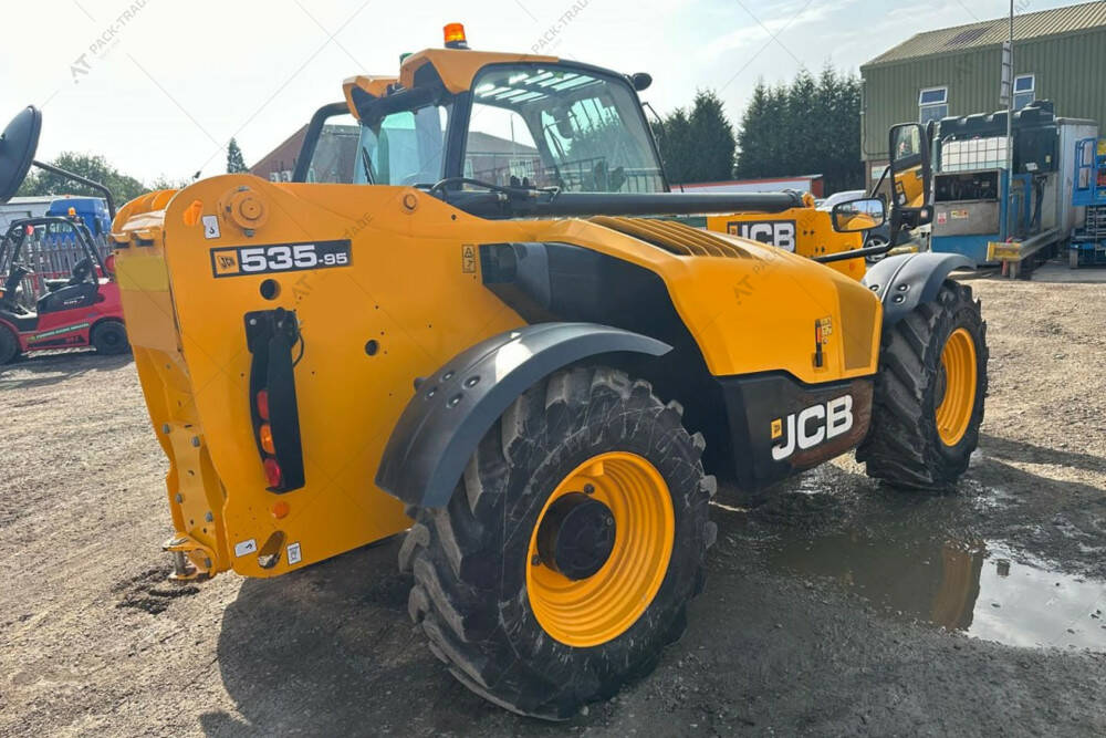 Навантажувач б/в JCB 535-95, 2022 р/в, з напрацюванням 781 м/год. Двигун – 55 кВт. Вантажопідйомність – 3500 кг. Висота підйому – 9,5 м. Габаритна ширина – 2,35 м. Висота – 2,5 м. Важелі. Шини – Michelin Power CL 400/80-24. Додаткове робоче освітлення спереду. Захист лобового скла. Захист даху кабіни.