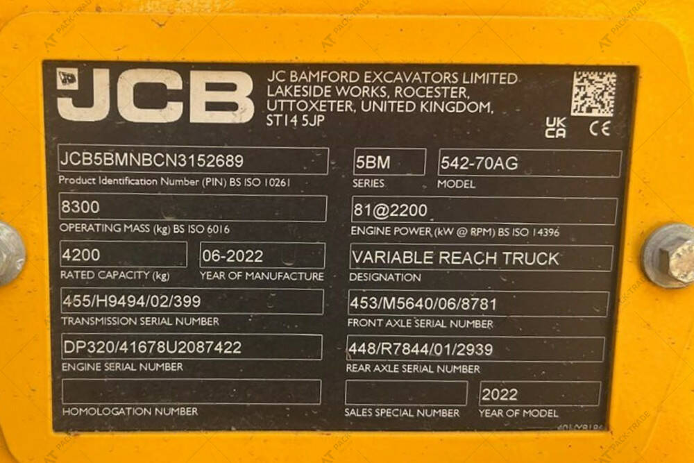 Телескопічний навантажувач JCB 542-70 AGRI 2022 р. 81 кВт * Дж 1958 м/г. № 5459 B