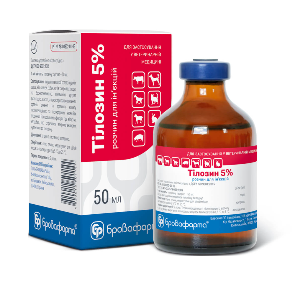 Лікування великої рогатої худоби, овець, кіз, свиней, собак, котів, кроликів за захворювань на хламідіоз, мікоплазмоз, артрит, мастит, за захворювань органів дихання та ШКТ, післяопераційних та післяродових ускладнень та інших бактеріальних інфекцій, що спричинені мікроорганізмами, чутливими до тилозину.
