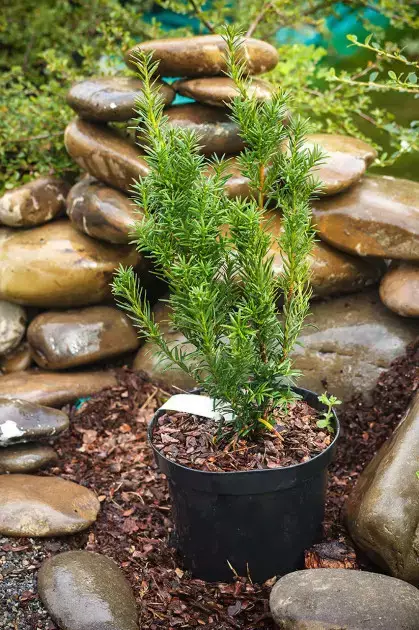 Тис середній Хіксіі - вічнозелений хвойний кущ з колоновидною формою крони.