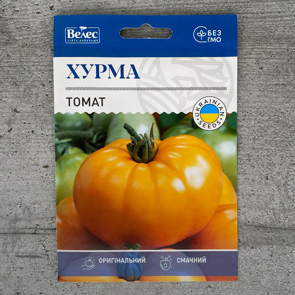 Середньоранній сорт універсального використання. Рослина середньоросла 70-100 см, детермінантного типу. Плоди дуже привабливого вигляду, великі, плоско і круглі, при дозріванні золотисто-оранжеві, масою 100-250 г, за формою і кольором нагадують хурму. Плоди, м'ясисті, солодкі, надзвичайно приємною консистенції, має підвищений вміст каротину і низький вміст органічних кислот. Врожайність 4-5 кг/кущ.