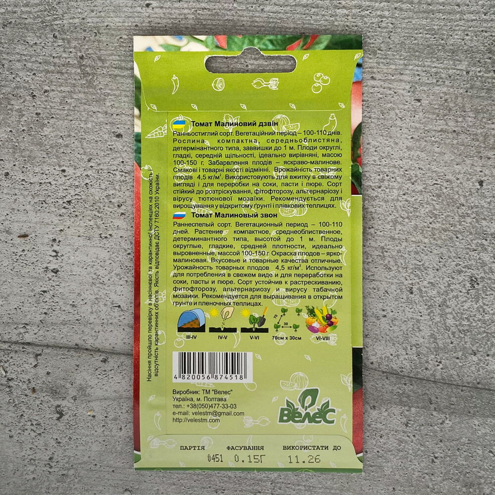Томат Малиновий дзвін 0,15 г насіння пакетоване Велес