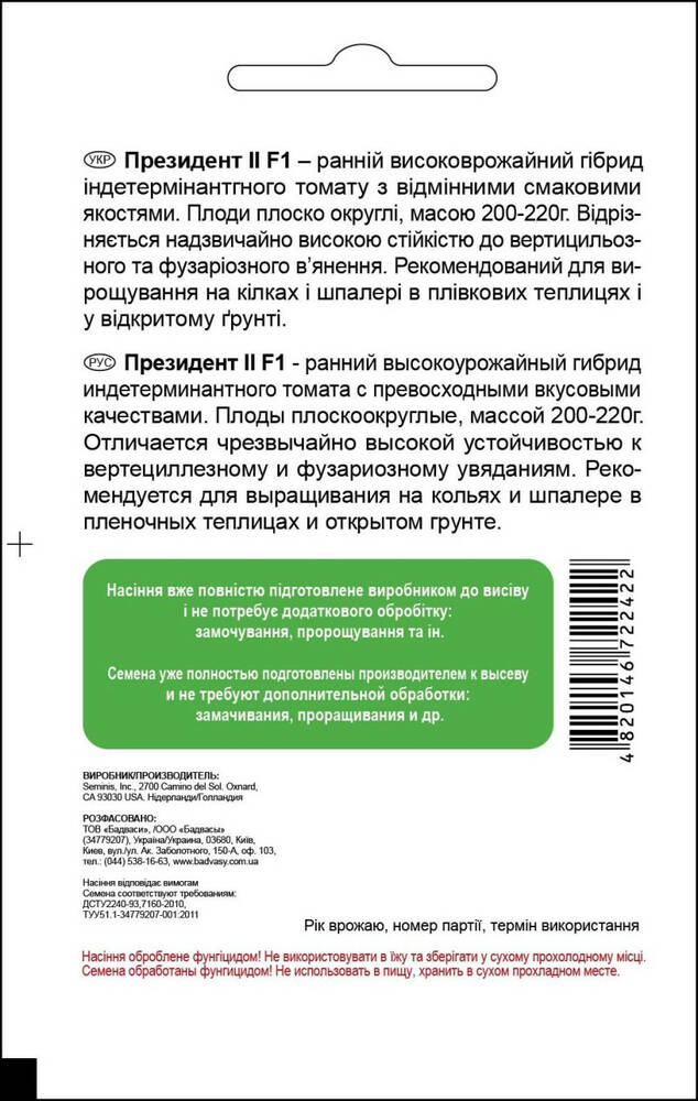 Томат Президент F1, 8 шт, Садиба