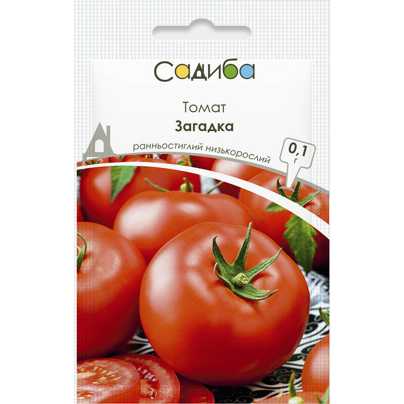 Загадка - врожайний, високоякісний сорт. Кущ висотою до 50 см, не потребує пасинкування. Плоди яскраво - червоні, округлі, м’ясисті, не розтріскуються. Сорт універсальний: для свіжого споживання і консервування.