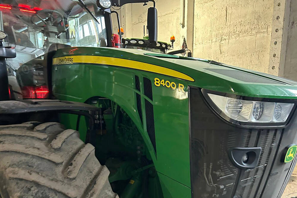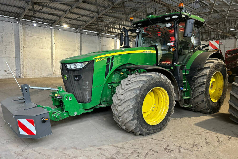 Дизельний трактор б/в John Deere 8400R Premium Edition, 2018 р/в, з напрацюванням 4204 м/год. Потужність двигуна – 400 к. с. Передня навіска. GPS Антена John Deere Starfire 6000.