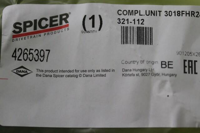 3. Гарантія виробника – на всі запчастини DANA SPICER поширюється офіційна гарантія, що забезпечує захист від підробок.