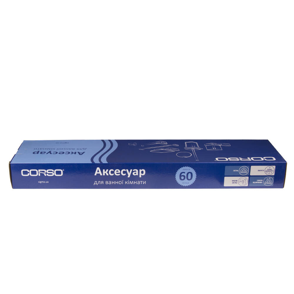 Аксесуари для ванної кімнати - це вироби, які виконують утилітарні та декоративні функції. За допомогою цих виробів з функціональним та привабливим дизайном, інтер'єр вашої кімнати досягне необхідного рівня комфорту. Аксесуари торгівельної марки CORSO виготовлені з високоякісної латуні та мають унікальне зносостійке покриття. Сантехніка торгівельної марки CORSO виробляється у відповідності з усіма стандартами і технічними умовами, встановленими в ЄС.