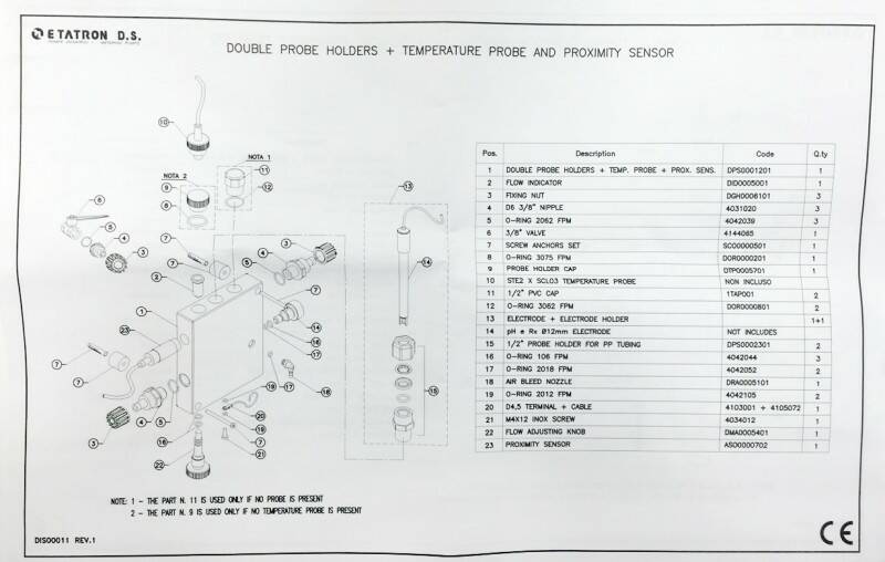 - У своїй комплектації, проточний тримач датчиків містить ручку тонкого регулювання потоку та ніпель відбору проб.