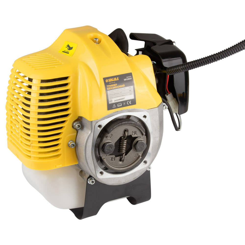 Бензиновий тример Sigma являє собою ручний моторизований виріб з верхнім розташуванням двигуна внутрішнього згорання. Принцип дії виробу дуже простий: обертальний рух від двигуна внутрішнього згорання передається на вал. Конічний редуктор здійснює механічну передачу крутного моменту від валу на шпиндель, на якому закріплений ніж або котушка з ліскою