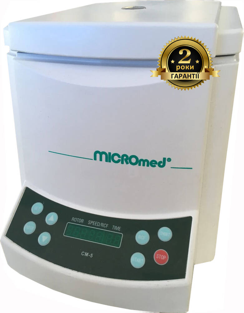 MICROmed СМ-5 — високошвидкісна настільна лабораторна центрифуга з частотою обертання до 16000 об/хв, одна з найпотужніших і водночас компактних моделей у своєму класі. Призначена для отримання фракцій крові, роботи з біологічними рідинами та дослідження неоднорідних рідких систем у діагностичних і наукових цілях. Є аналогом моделі ELMI CM-50.