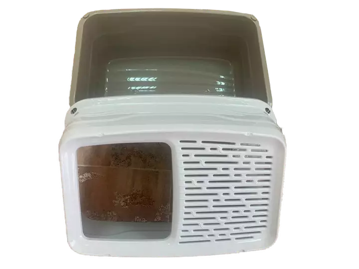 Акуратний закритий туалет з верхнім входом для котів.