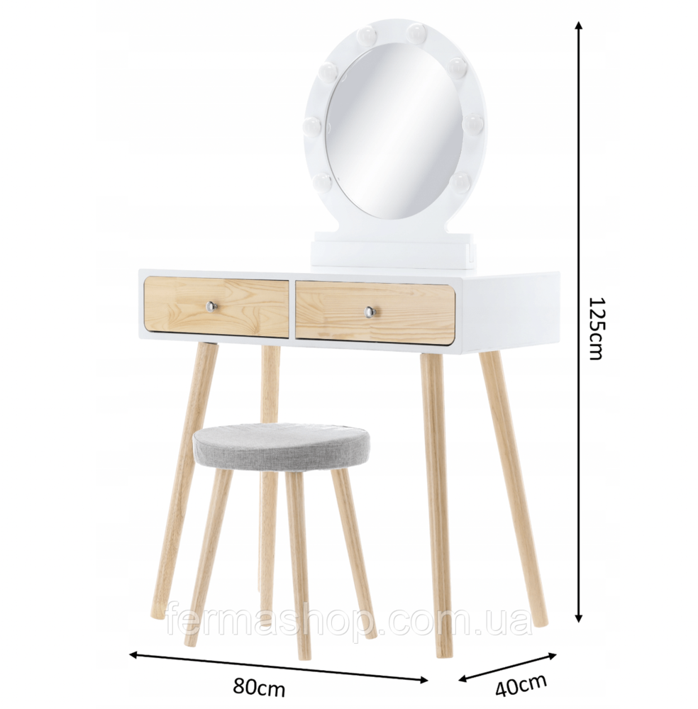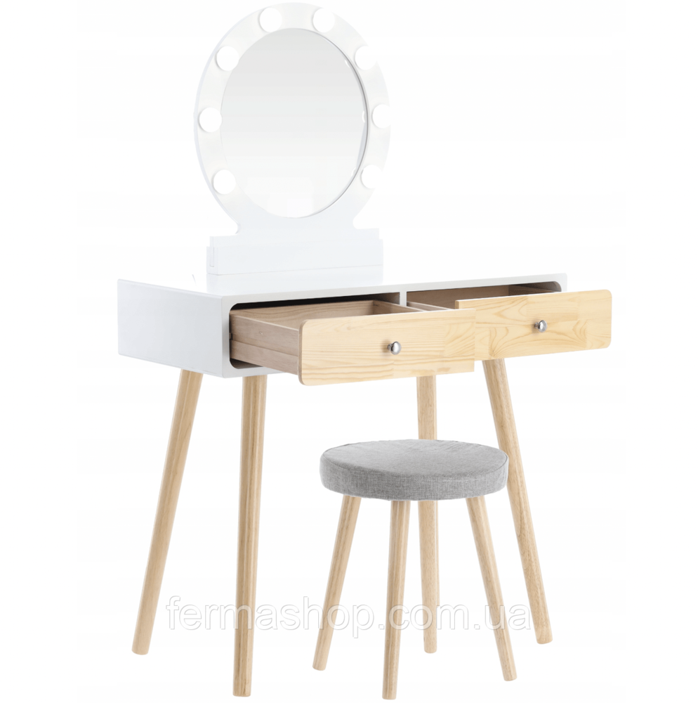 Туалетный столик имеет 2 ящика, где можно хранить косметику,