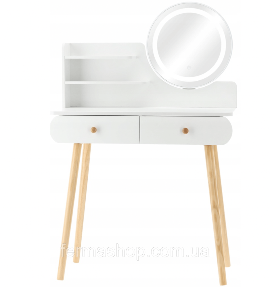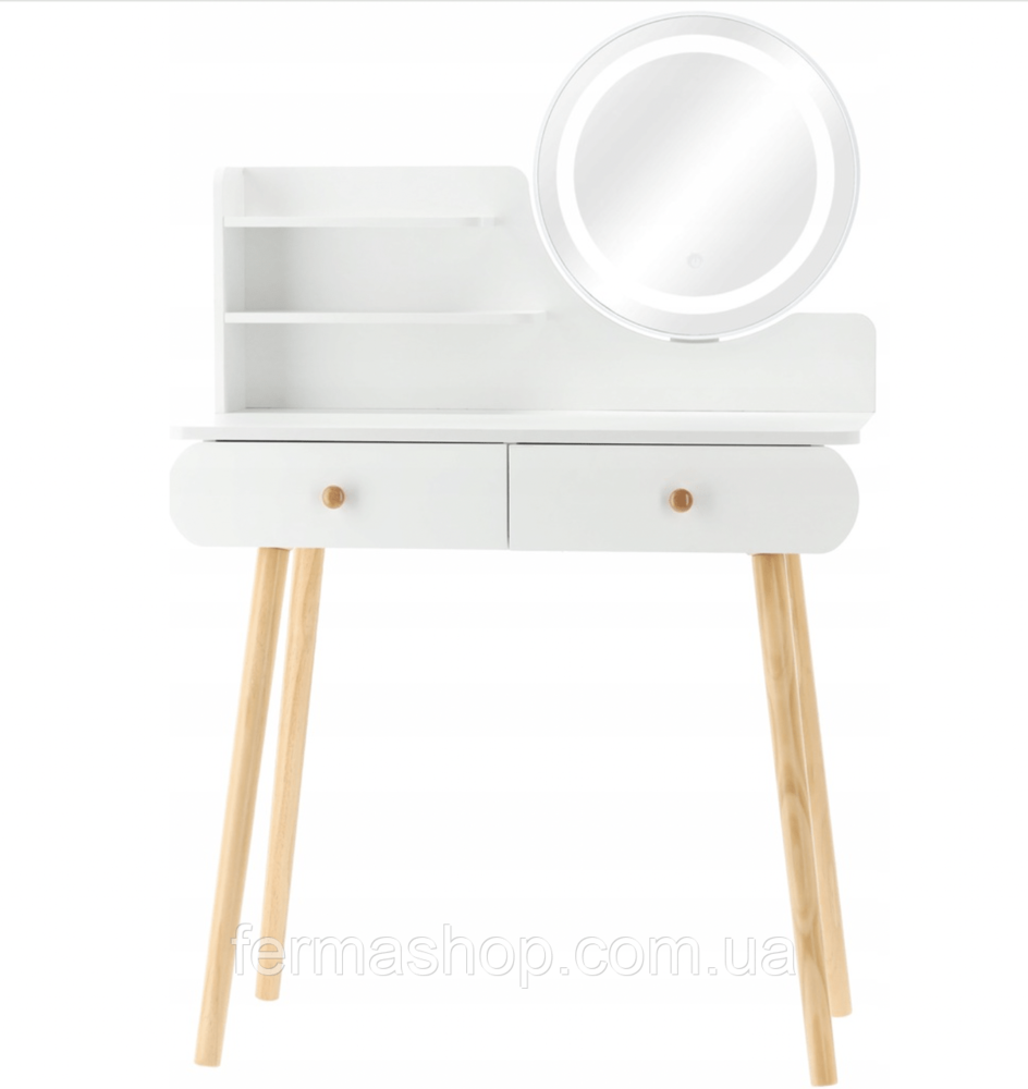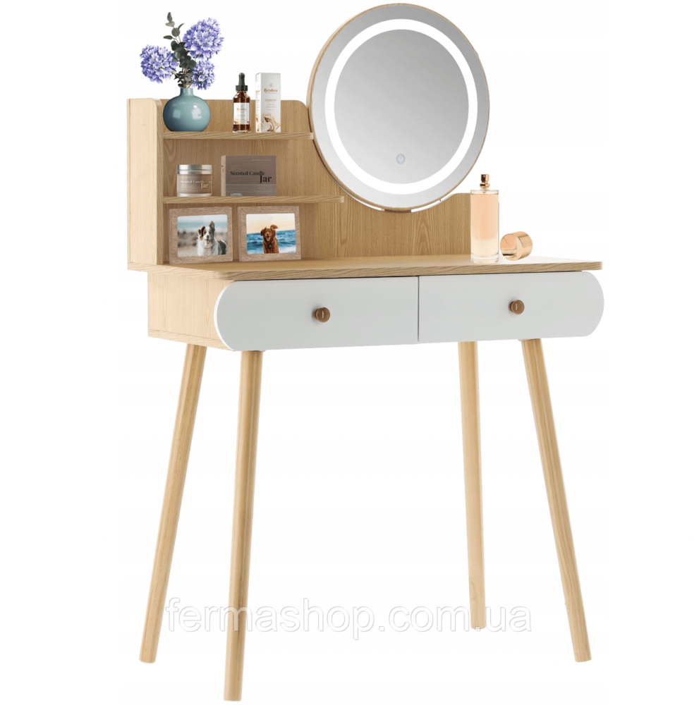 БЕЛЫЙ/ДЕРЕВЯННЫЙ ТУАЛЕТНЫЙ СТОЛИК СО СВЕТОДИОДНЫМ ЗЕРКАЛОМ