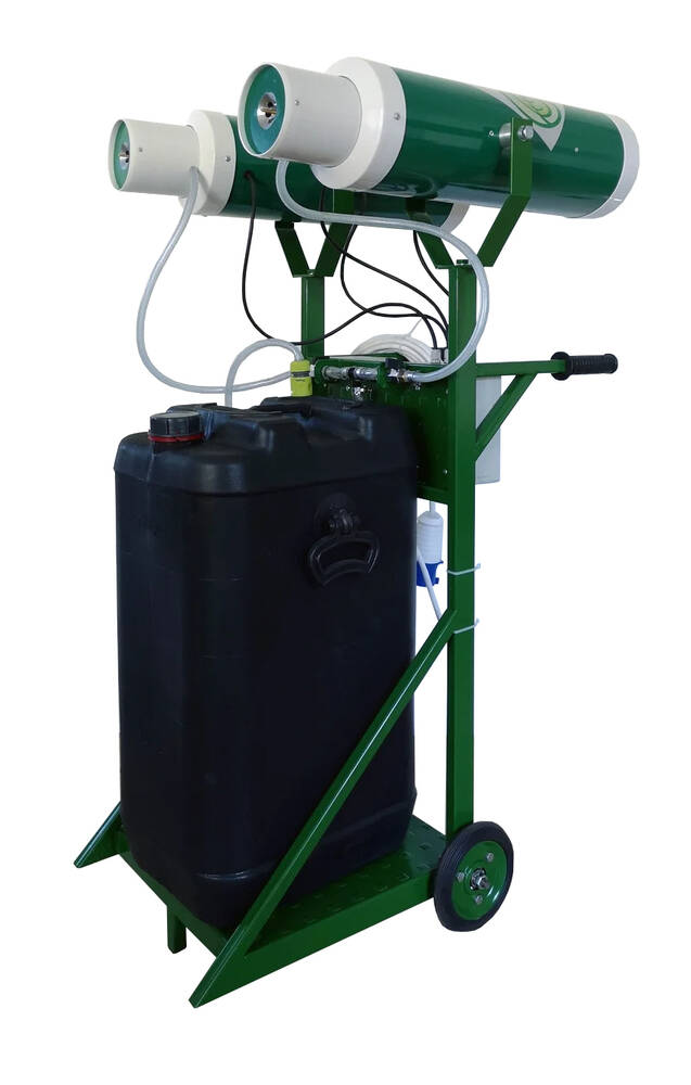Туманоутворювач Туман-L Twin - це потужний двотурбінний апарат, призначений для використання у великих об'ємних приміщеннях. Укомплектований двома окремими подвійними незалежними турбінами, здатними повертатися, збільшеним баком для робочого розчину, вологозахисними кнопками, вилкою і розеткою на 32А, додатковими повітряними фільтрами. Має надійний захист від перегріву турбін.