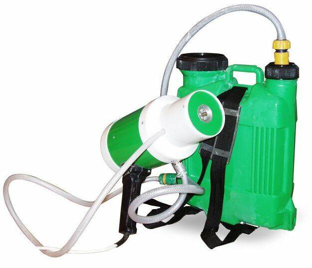 Агрегат з одного турбіною для обробки площ невеликого і середнього розміру. Обробка здійснюється за безпосередньої участі людини, яка контролює якість процесу розпилення.