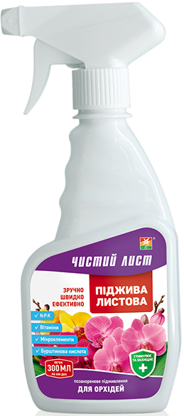 Удобрение Чистый лист Подкормка листовая для орхидей - Используется как высокоэффективное и быстрое средство для устранения дефицита питательных веществ в листьях и ветвях растений. Является также удобным средством профилактики заболеваний всех видов орхидей.