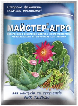 Назначение: для корневой подкормки всех видов кактусов и суккулентов.