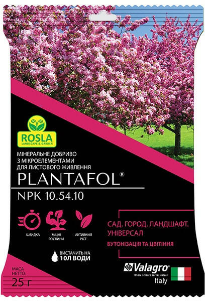 Удобрение PLANTAFOL 10.54.10 для сада, огорода, ландшафта (бутонизация и цветение) 25 г Valagro