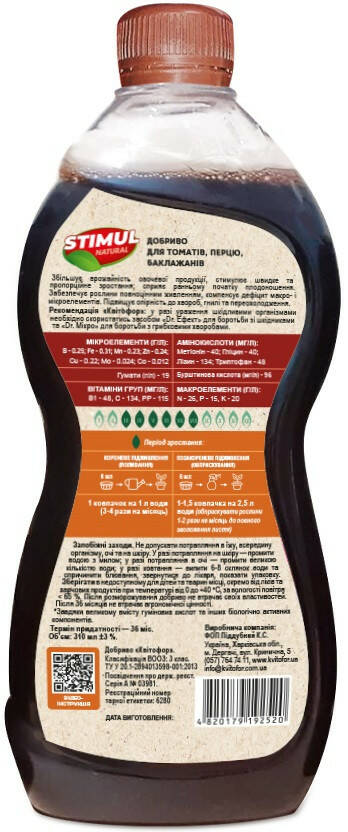 Удобрение STIMUL NATURAL для томатов, перца, баклажанов 310 мл Kvitofor