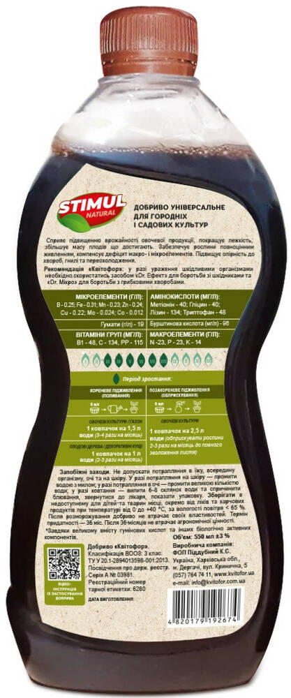 Удобрение STIMUL NATURAL Универсальное для огородных и садовых культур 550 мл Kvitofor