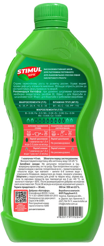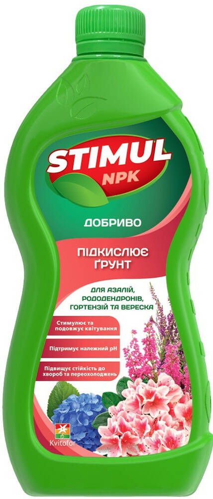 Удобрение STIMUL-NPK для азалий, рододендронов, гортензий и вереска - Высокоэффективное средство для поддержания нужного для ацидофильных растений уровня кислотности почвы. Способствует гармоничному росту и развитию растений. Устраняет видимые проявления дефицита элементов питания. Увеличивает сопротивляемость растений к неблагоприятным условиям содержания и болезней.