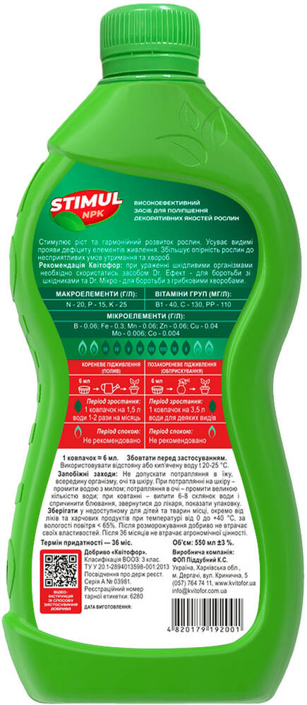 Удобрение STIMUL-NPK для кактусов, суккулентов, каланхоэ и бонсай 550 мл Kvitofor