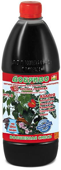 Удобрение Волшебная смесь для растений, растущих на кислых почвах - Комплексное, минеральное и эффективное биоудобрение. Его основу составляют органические, биологически активные компоненты природного происхождения. Удобрение содержит макро- и микроэлементы, легкоусвояемые органические соединения; стимулирует активное почвообразование, восстанавливает плодородие почвы, способствует развитию мощной корневой системы и листовой поверхности кроны, улучшает прорастание семян, увеличивает урожайность.