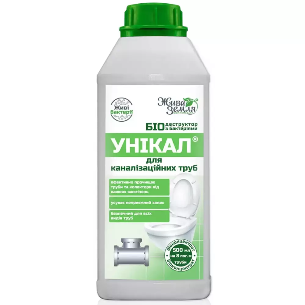 Біологічний концентрований препарат Унікал застосовується для прочищення і прискореного перероблення органічних відходів (фекалій, харчових і рослинних відходів) у каналізаційних трубах. Засіб містить у складі суміш природних мікроорганізмів (комплекс штанів-деструкторів Rodex, бактерії Arthrobacter sp., bacillus subtilis, Enterrococcus), а також ферменти, які сприяють прискореному процесу розкладання й утилізації органічних отходов. У разі потрапляння в каналізаційну систему бактерії активізуються й утворюють поселення на внутрішніх стінках труб, які активно переробляють нарости та скупчення органічних відходів у каналіаційних трубах, не пошкоджуючи їх. Процес розкладання й утилізації органічних відходів відбувається завдяки гідролізу макромолекул у розчинних сполуках. Завдяки активним компонентам у своєму складі препарат ефективно прочищає як пластикові, так і металеві труби, сифони та колектори, усуває неприємні запахи та пригнічує розвиток хвороботворних мікроорганізмів. Препарат Унікал є екологічним продуктом, нешкідливим для людей і тварин, який анітрохи не забруднює довкілля, на відміну від хімічних аналогів.