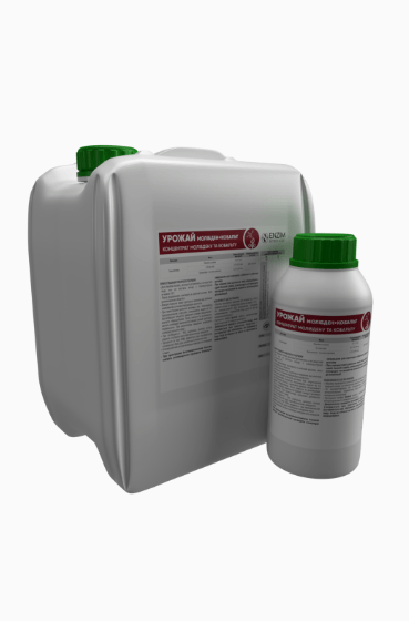 Урожай Молібден – рідке мікродобриво на основі EDTA з високим вмістом молібдену (Mo) для підживлення с.-г. культур: бобові культури, деякі з родини хрестоцвітих (особливо ріпак і гірчиця), цукрові буряки.