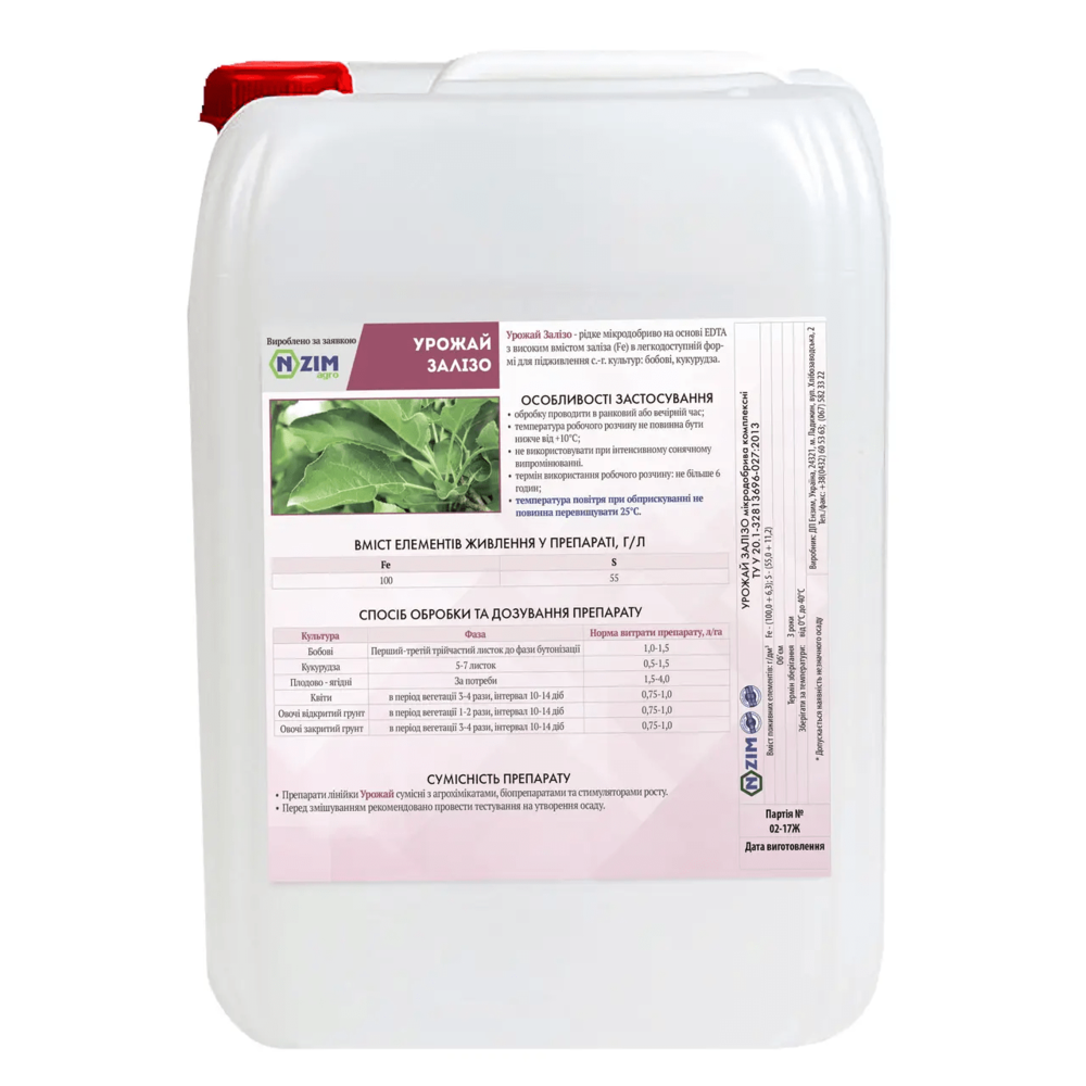 Рідке мікродобриво з високим вмістом заліза (Fe) в легкодоступній формі для позакореневого підживлення с.-г. культур. Рекомендується для корекції живлення культур чутливих до нестачі заліза – бобові, картопля, капуста, томати, кукурудза, плодові – ягідні.