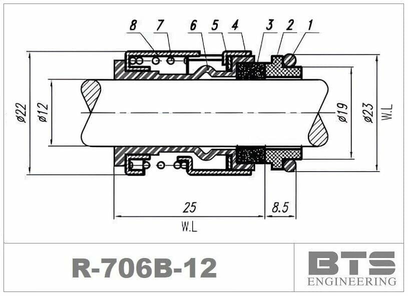 Механічне сильфонне торцеве ущільнення R-706B використовується в насосах Grundfos: