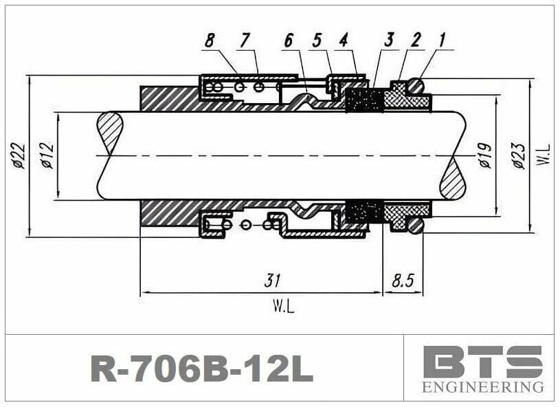 Ущільнення торцеве насосу Grundfos R-706B 12, L, SIC/SIC, EPDM, 304 типу Grundfos BUBE, Grundfos BUBV