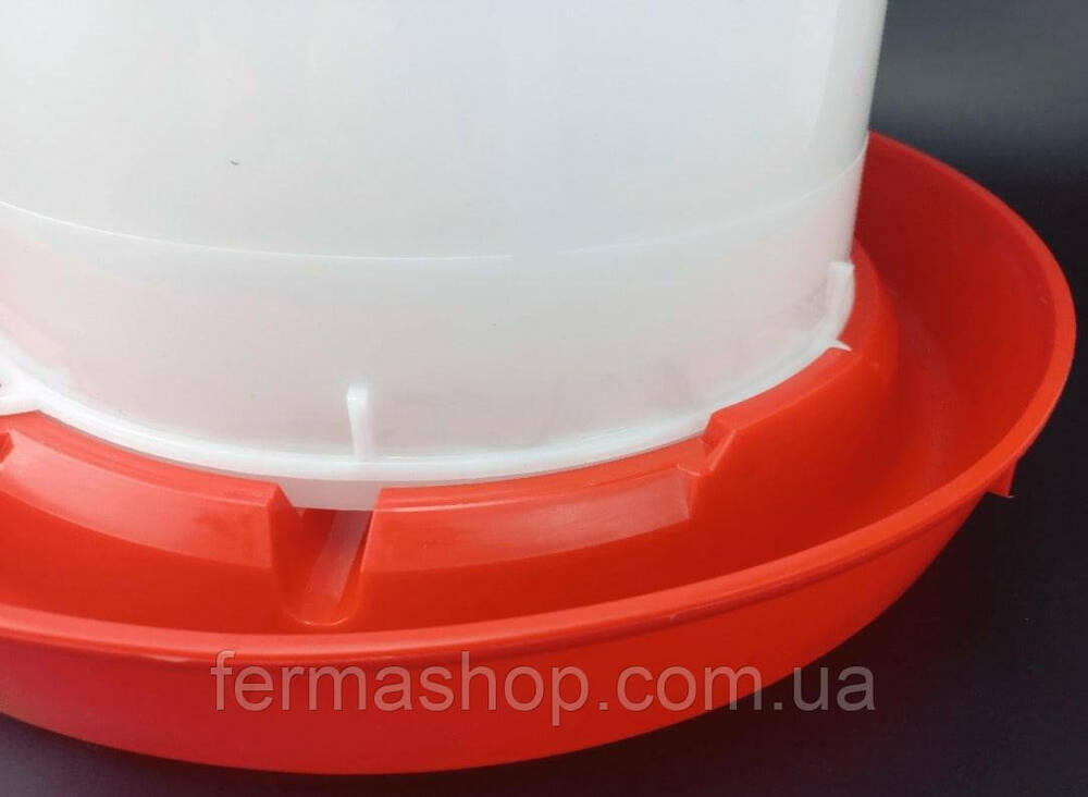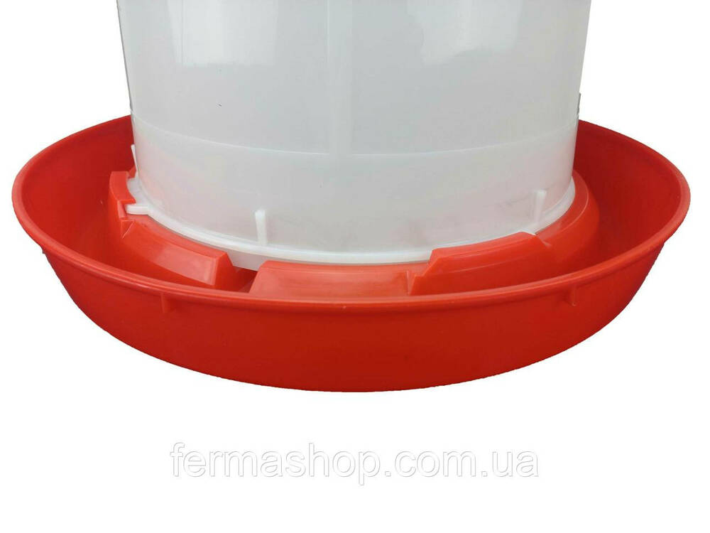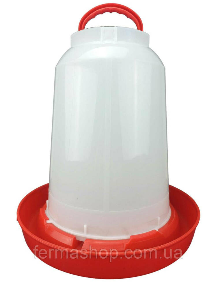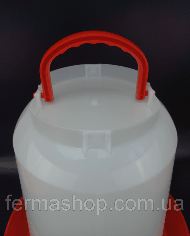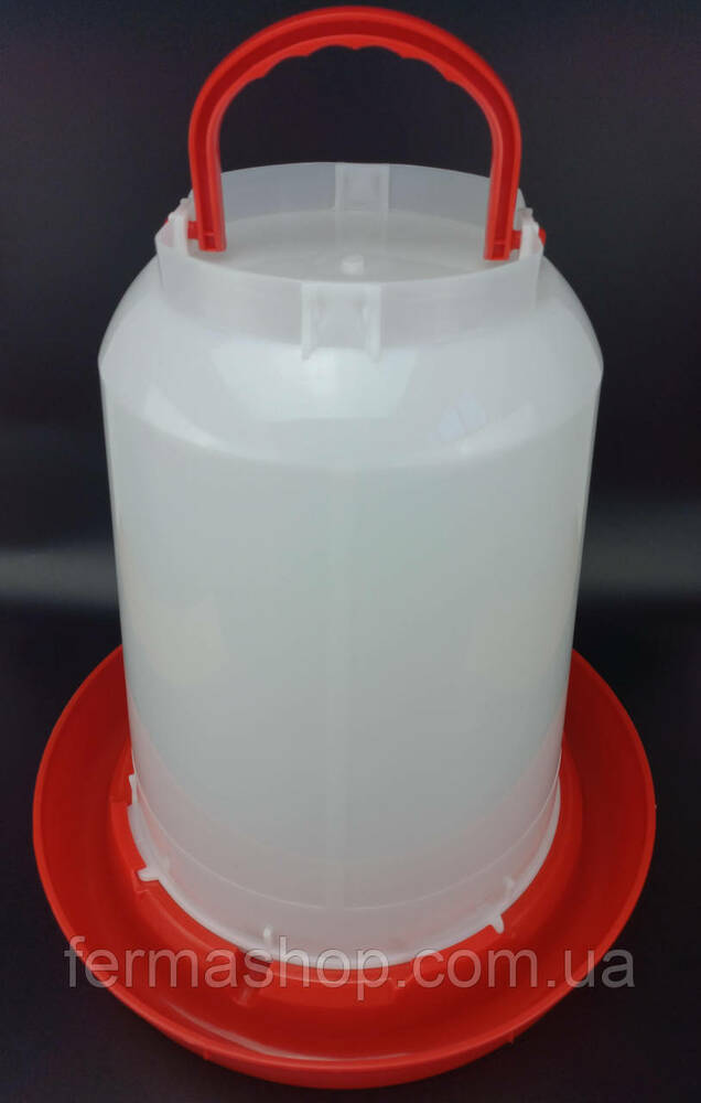 Информация о поилке: Объем бункера: 18 л с ручкой Изготовлена поилка из качественного пластика, который обладает хорошей прочностью. Дно поилки надежно фиксируется к резервуару с помощью защелок, что позволяет удобно переносить поилку, взявшись за пластиковую ручку. Принцип действия поилки: в колбу набирается чистая вода, на нее закрепляется дно поилки, затем все это быстро переворачивается и ставится на ровную поверхность.