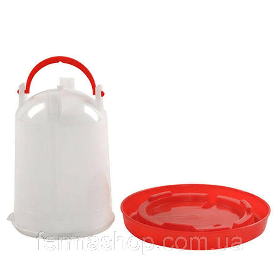 Дно поилки надежно фиксируется к резервуару с помощью защелок, что позволяет удобно переносить поилку, взявшись за пластиковую ручку.