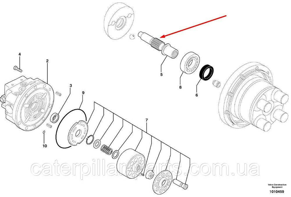 Вал ходового гідромотора та редуктора ходу на екскаватор Volvo EC25, EC30, EC35, ECR28, ECR38 (Вольво)