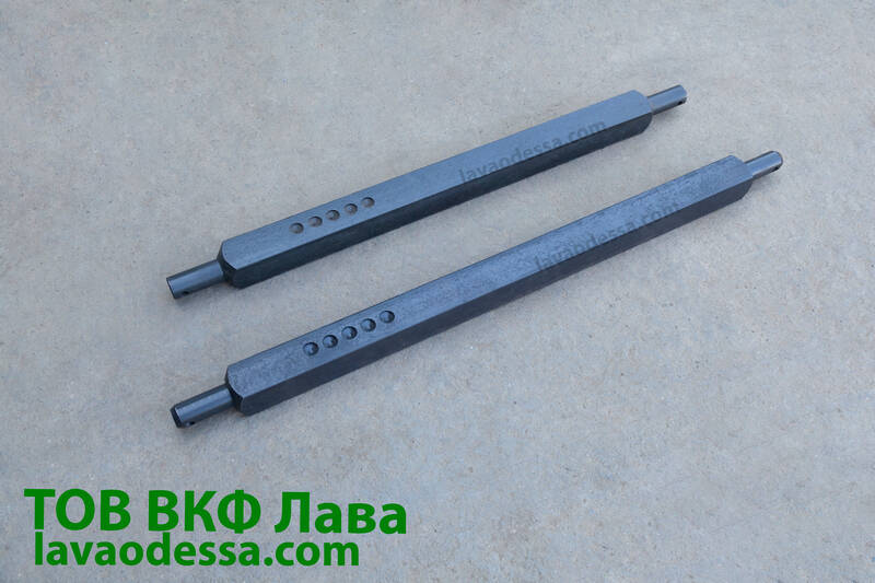 Вал плуга квадратний (вісь плуга) ПНБ 04.621 - застосовується на плугах ПБЛ(ПНБ) 5-40, 6-40. Є віссю навіски та слугує для приєднання плуга до трактора. Обов'язково під час виготовлення вала використовується сталь марки 45. Вага - 31,09 кг.