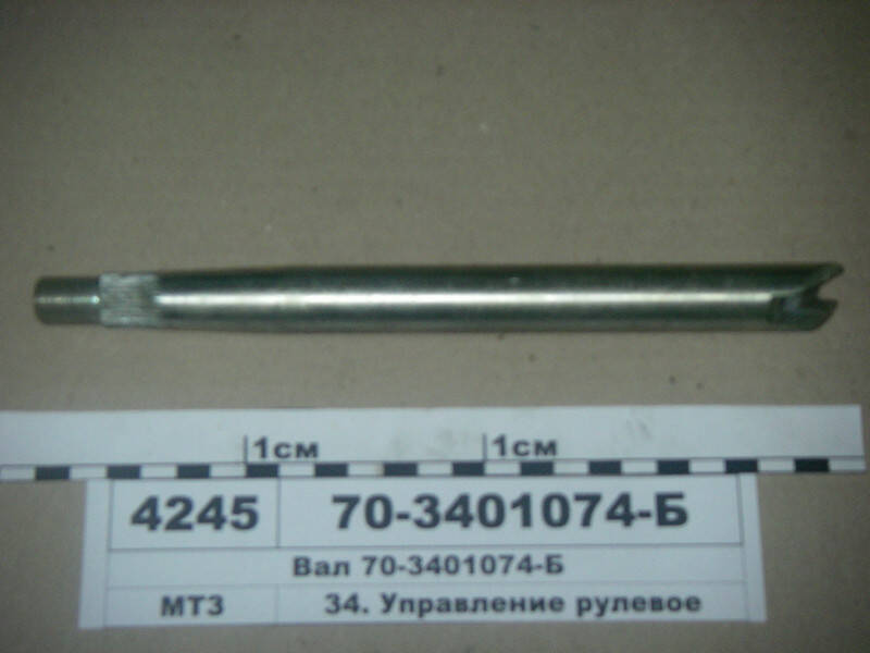 Вал рулевого механизма верхний, устанавливается на тракторах МТЗ-80, ЮМЗ-6, Т-16, оригинальный, производства ОАО 'Бобруйский завод тракторных деталей и агрегатов, 'ОАО 'БЗТДиА', г. Бобруйск, Республика Беларусь Рулевое управление — система управления направлением движения транспортных средств с помощью рулевого колеса. Состоит из механизмов, преобразующих положение (угол поворота) руля в пропорциональное изменение положения колёс или аналогичных управляющих направлением движения элементов Как и компоновка трактора, рулевое управление бывает двух основных видов — поворот передних колёс (аналогично автомобилям), и относительный поворот полурам (тракторы К-700, Т-150К). В компоновке (и рулевом управлении) из двух полурам имеются следующие достоинства: Унификация, простота и надёжность ведущих мостов — они не содержат узлов поворота колёс. Две колеи при любом повороте полурам (задний мост идёт точно по следам переднего), что значительно улучшает проходимость. Поворот полурам позволяет плавно перемещать влево-вправо переднее или заднее навесное орудие, что повышает удобство работы.