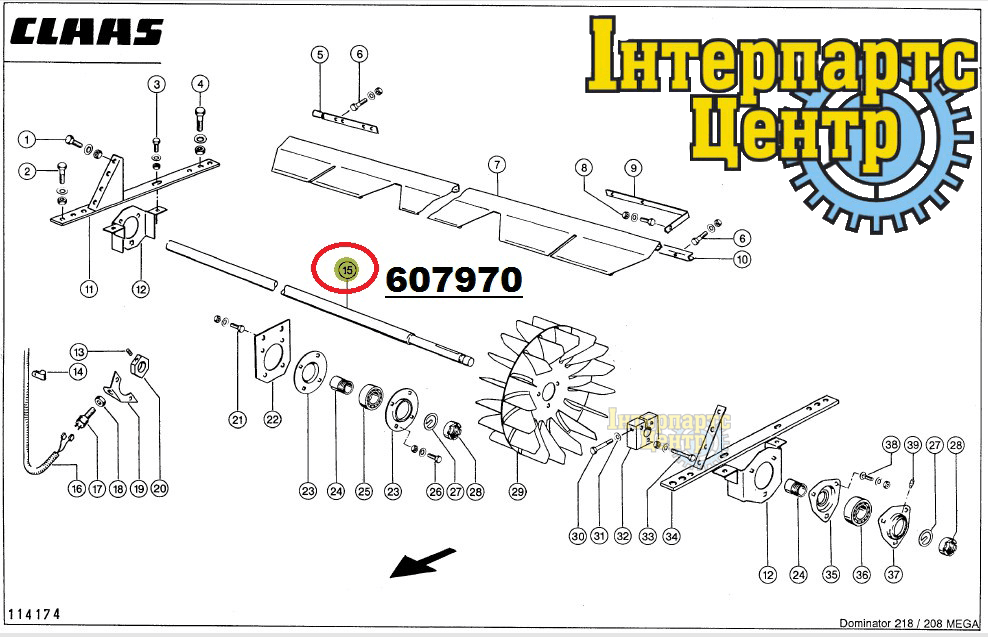 Вал вентилятора D35х2005 670970, 0006079702, CLAAS