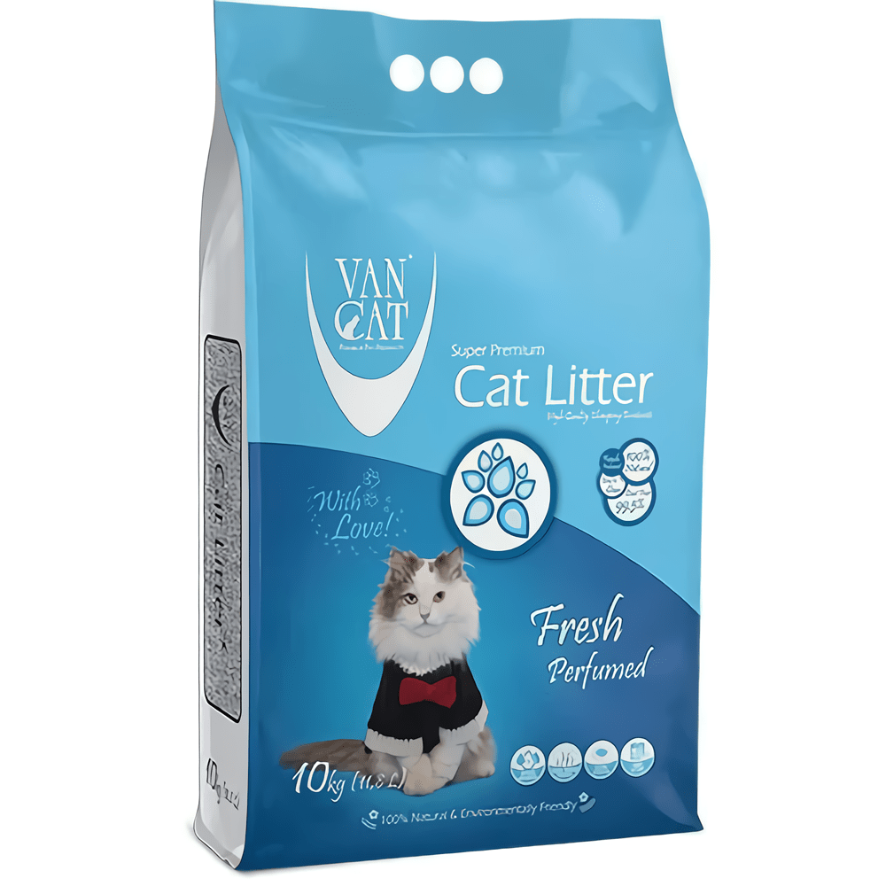 Наповнювач Van Cat Super Premium Quality виготовляється з натурального білого бентоніту (природний глинистий мінерал), активованого за допомогою кальцинованої соди із застосуванням подвійного просіювання для усунення пилу.
