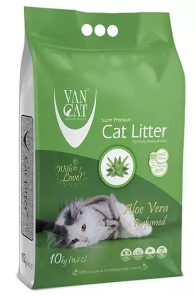 Наповнювач VanCat Super Premium Quality з ароматом алое віра виробляється з натурального білого бентоніту (природний глинистий мінерал), активованого за допомогою кальцинованої соди із застосуванням подвійного просіювання для усунення пилу.