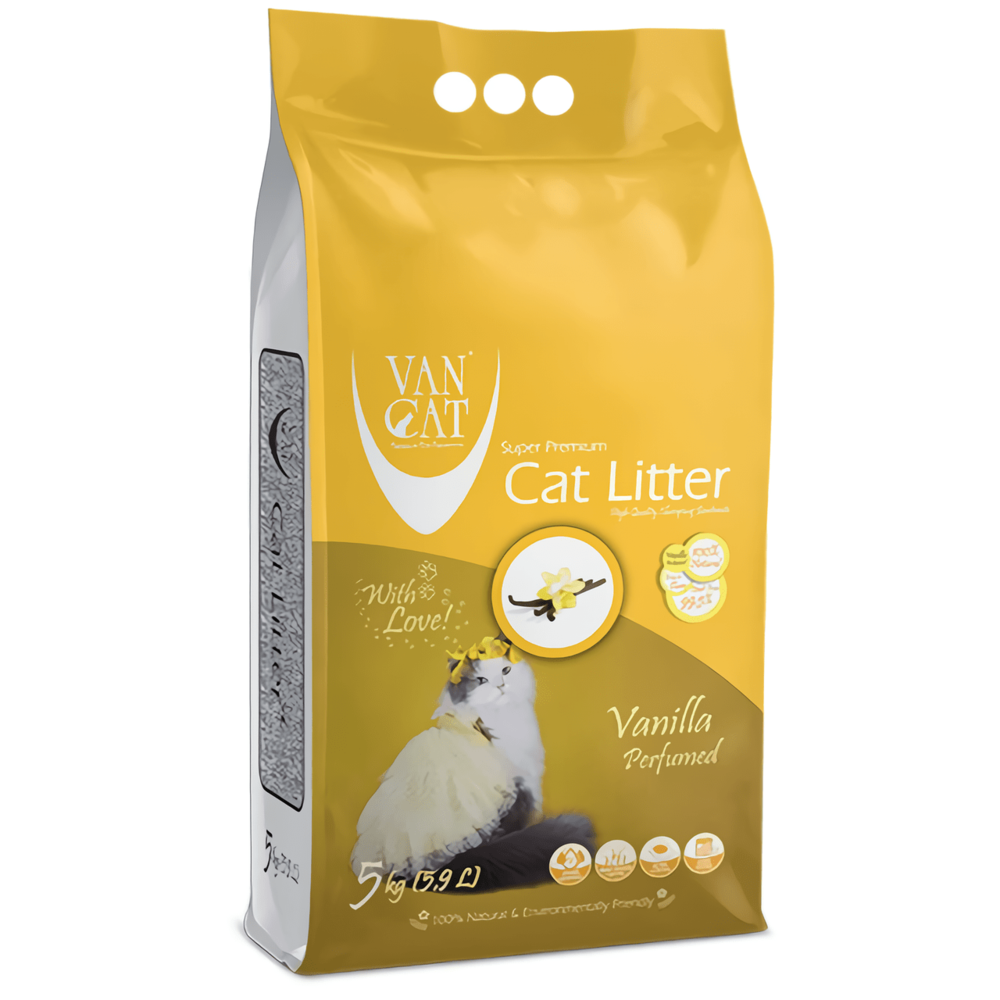 Наповнювач VanCat Super Premium Quality з ароматом ванілі виробляється з натурального білого бентоніту (природний глинистий мінерал), активованого за допомогою кальцинованої соди із застосуванням подвійного просіювання для усунення пилу.