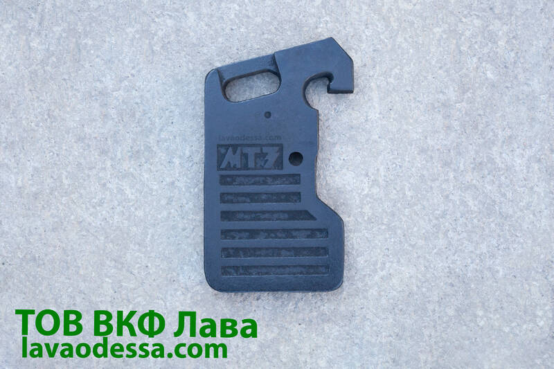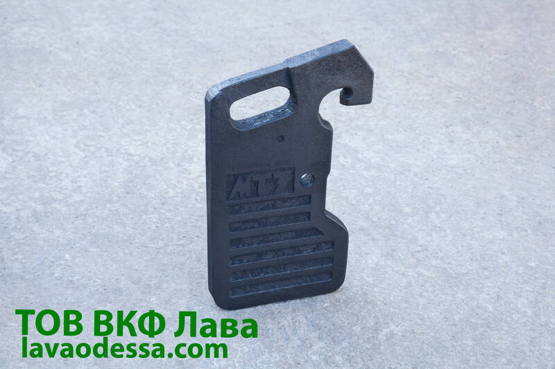 Вантаж баластний передній МТЗ являє собою плоску сталеву відливку з гачком, передбаченим для того, щоб вантаж можна було повісити на спеціальний кронштейн передніх вантажів.