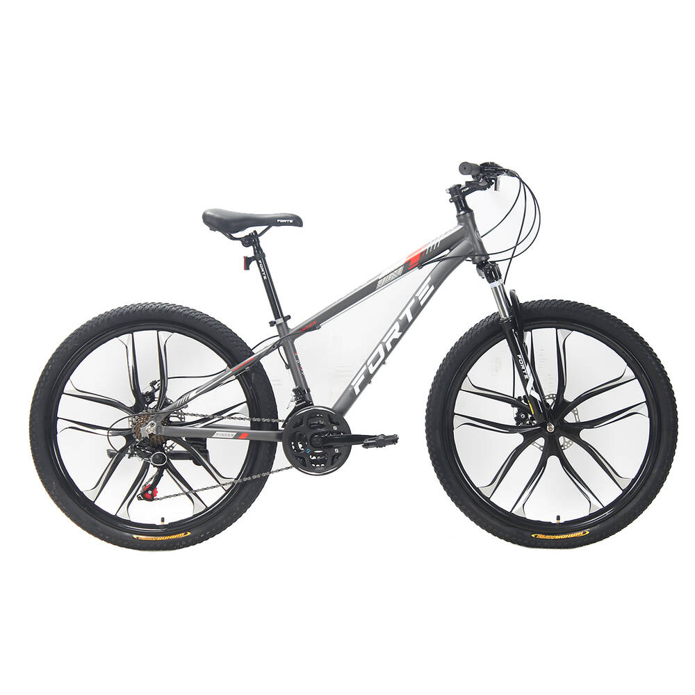 Опис велосипеда FORTE FINDER  25.2613-06S к26" р13" алюміній сіро-помаранчевий Велосипед FORTE FINDER  з алюмінієвою рамою має діаметр коліс 26” та виконаний у сірому кольорі.