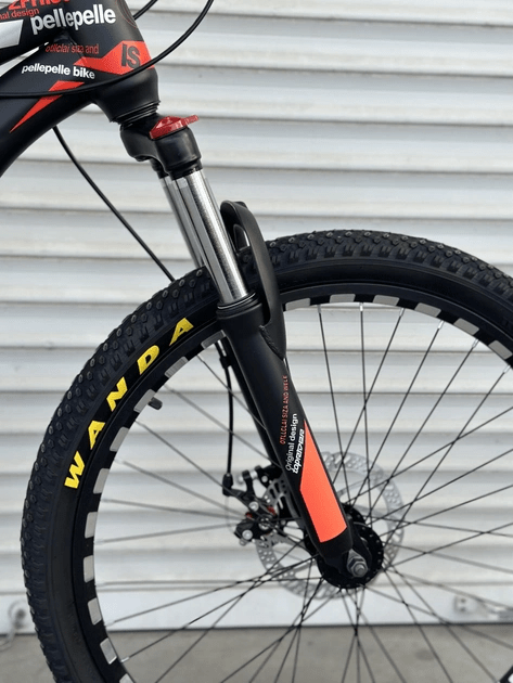 Передня вилка пружинного типу має хід 70 мм, якого достатньо для катання по місцевості з рельєфом середнього і високого рівня складності, а максимальне гасіння вібрацій забезпечує додаткова амортизація сидіння.