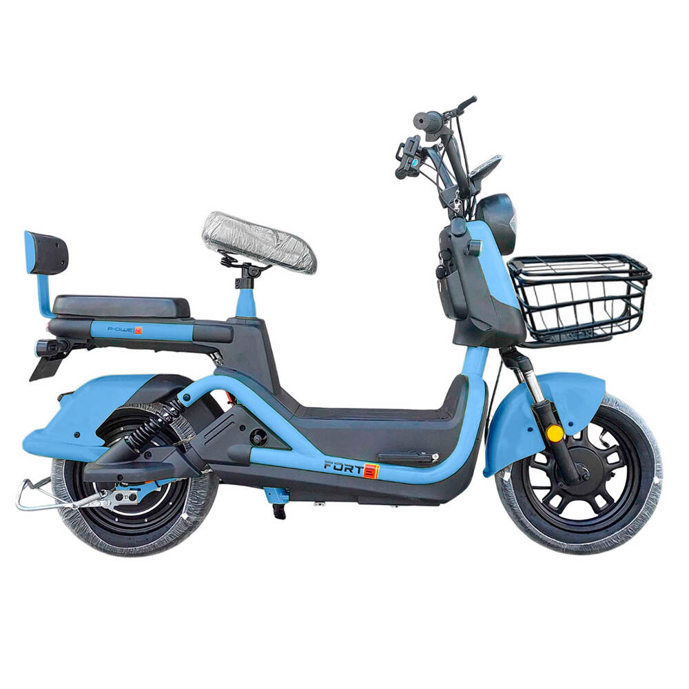 Велоскутер акумуляторний  RITM FORTE Блакитний Велоскутер акумуляторний  RITM FORTE — відмінний автономний засіб пересування. Конструкція цього електровелосипеда чимось нагадує полегшений скутер, з подібними характеристиками та параметрами. Електровелосипед не потребує наявності прав та стане відмінним варіантом для нетривалих поїздок на роботу, за покупками чи на пікнік. Особливості: СИГНАЛІЗАЦІЯ ЦИФРОВИЙ СПІДОМЕТР LED ФАРА СПИНКА ПАСАЖИРА ПОВОРОТНИКИ ЗАДНІЙ СТОП СИГНАЛ ЗАРЯДНИЙ ПРИСТРІЙ СТАЛЕВІ ДИСКИ РЕГУЛЮВАННЯ СИДІННЯ ПО ВИСОТІ