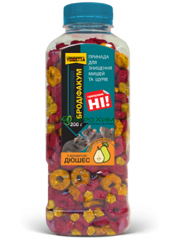 VENDETTA БРОДІФАКУМ - засіб від мишей та щурів яке працює за принципом принада-отрута. Для щурів необхідно розставити приманки по приміщенню, порція 25-50 грамів. Для боротьби з мишами досить порцій розміром 10-25 грам. Загибель гризуна настає через 3-7 діб. Приманки встановлюються на відстані 2-15 метрів, в залежності від кількості гризунів. Ревізію приманок проводити через 1-2 дні з моменту першої розкладки гранул, після чого ревізія проводиться через тиждень. При необхідності процедуру повторити, до повного знищення.