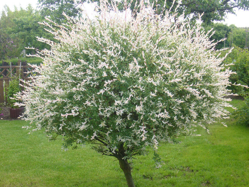 Верба цільнолиста японська Хакуро-Нішікі на штамбі. Ива цельнолистная японская Хакуро-Нишики на штамбе. Salix integra Hakuro-Nishiki.